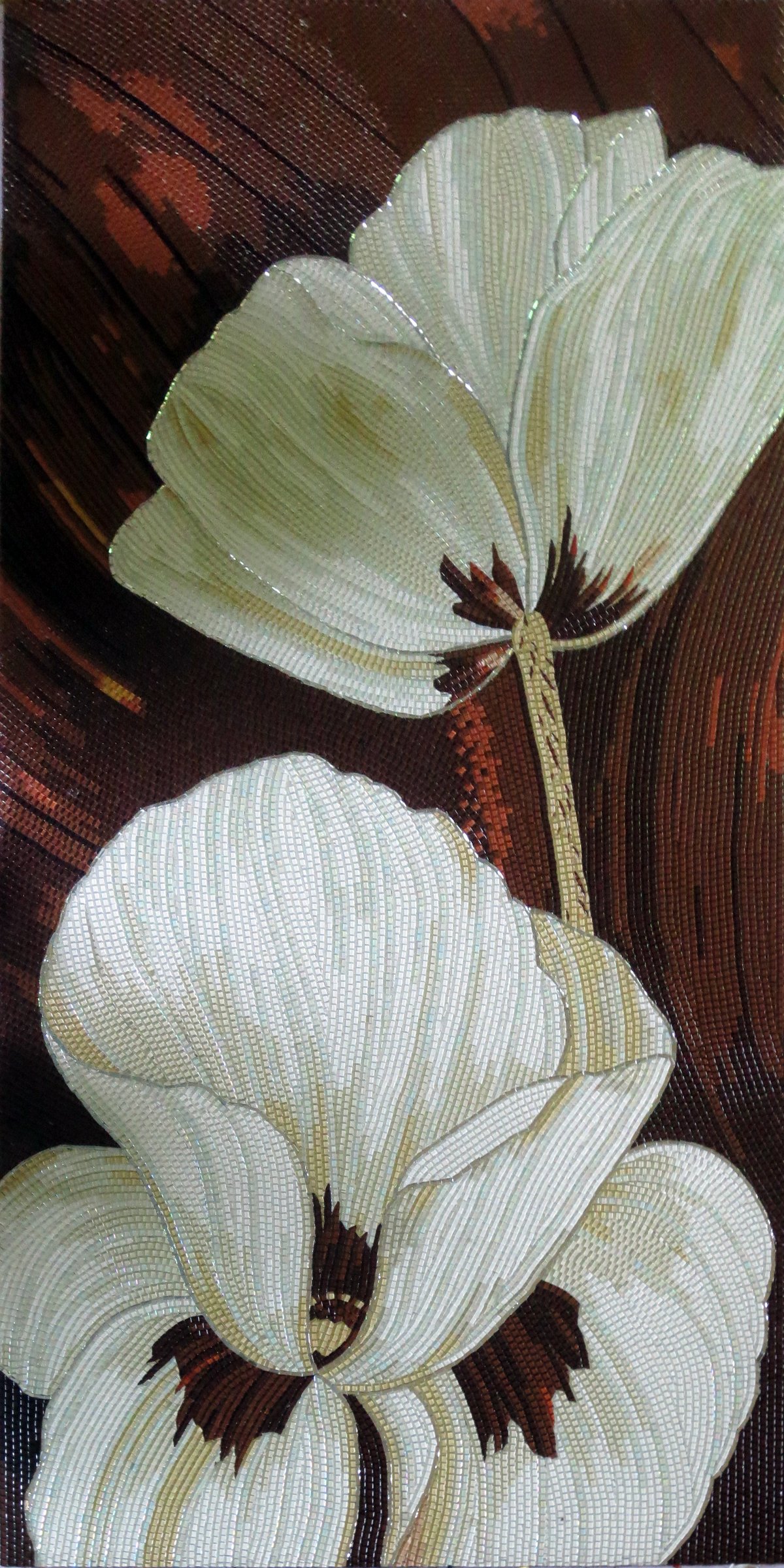 Exquisite handmade flower mosaic art piece. Each botanical mosaic is meticulously crafted by skilled artisans using premium ceramic and glass tiles.