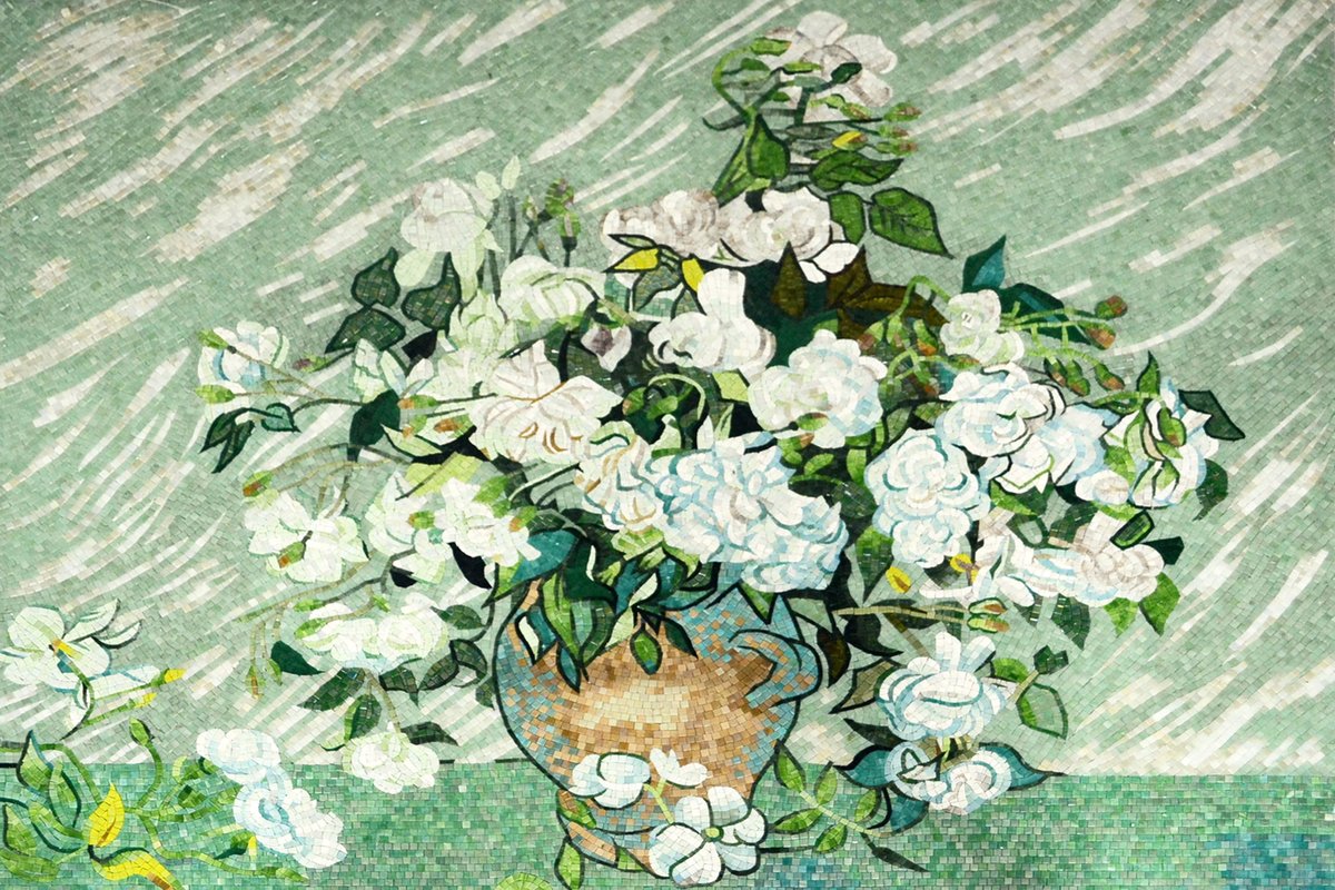 Exquisite handmade flower mosaic art piece. Each botanical mosaic is meticulously crafted by skilled artisans using premium ceramic and glass tiles.