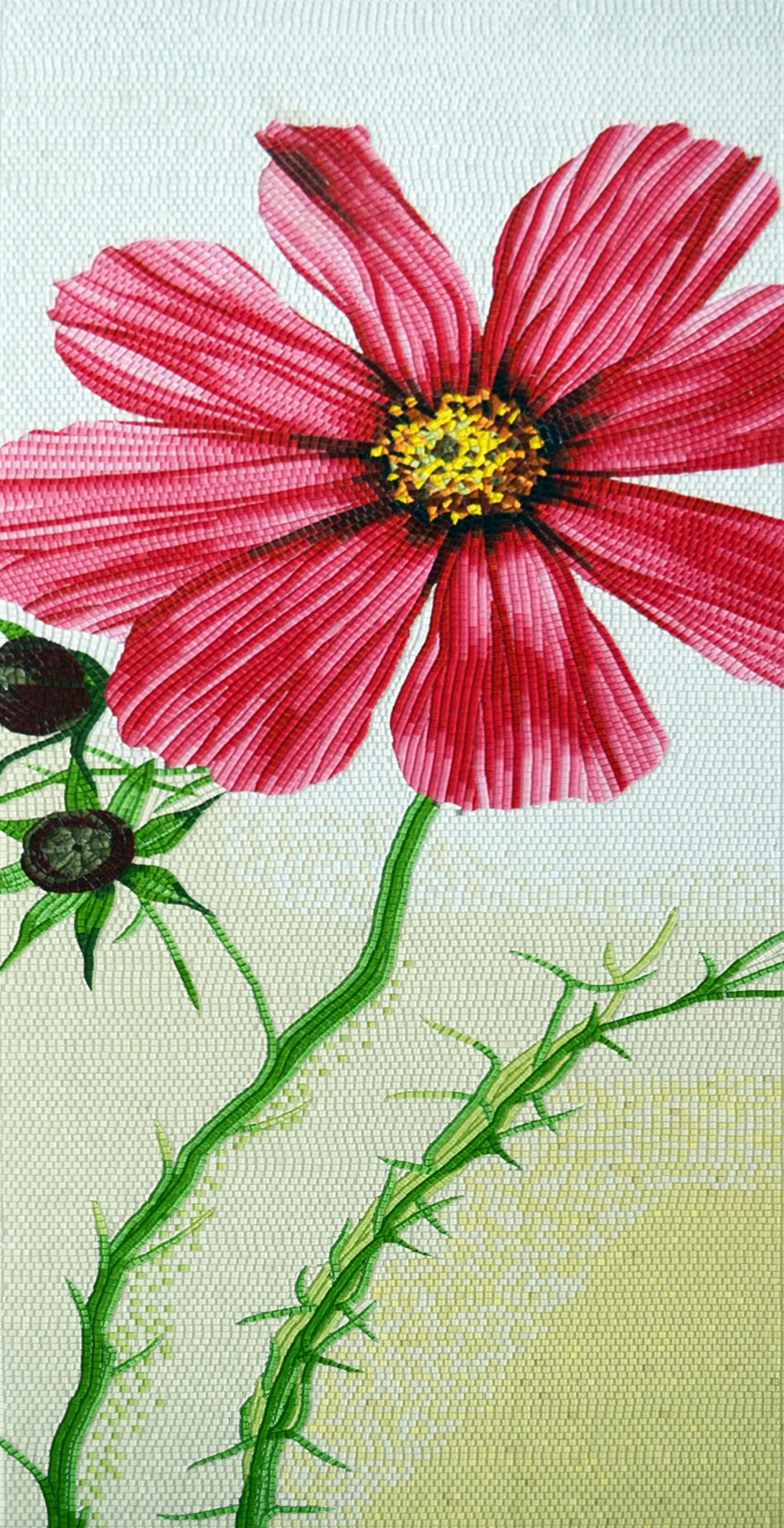 Handmade flower mosaic art. Premium ceramic tiles. Botanical wall decor.