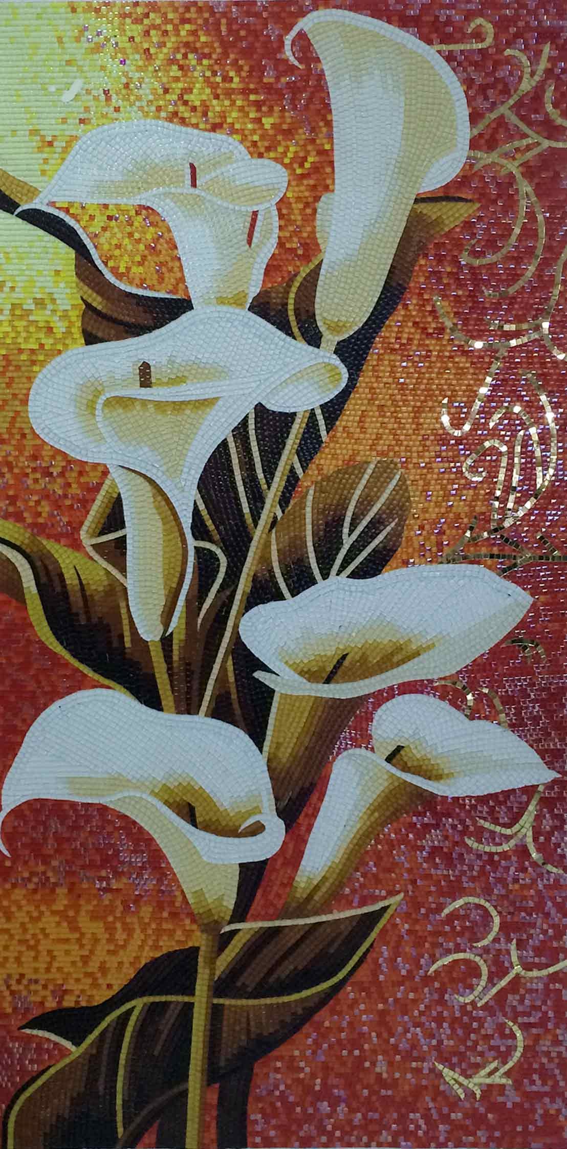 Handmade flower mosaic art. Premium ceramic tiles. Botanical wall decor.