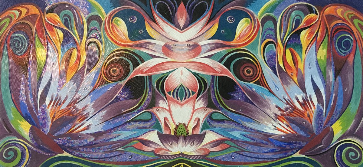 Handmade flower mosaic art. Premium ceramic tiles. Botanical wall decor.
