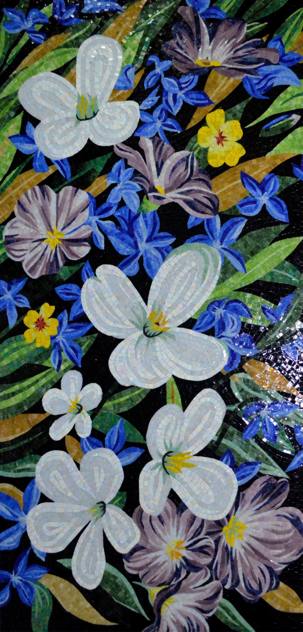 Handmade flower mosaic art. Premium ceramic tiles. Botanical wall decor.